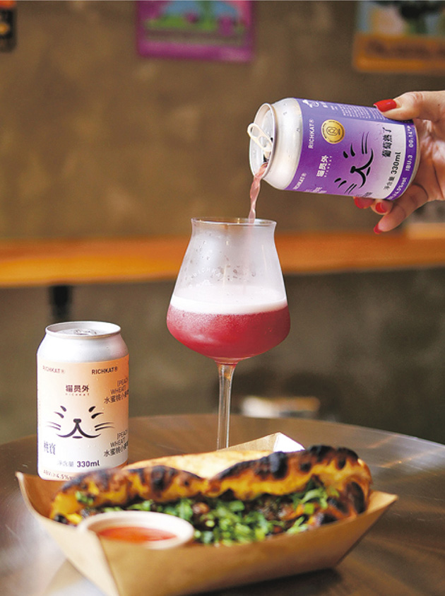 【明報專訊】內地手工啤專門店RICHKAT貓員外殺入中上環,一口氣在荷李活道和石板街開店。專門店於2017年成立,現時在內地有超過150間分店。店內提供10多種風味手工啤,清爽、果香或麥香口味一應俱全,當中5款啤酒曾在澳洲國際啤酒大賽中(AIBA)取得2銀3銅成績。貓員外到港後仍保持實惠價格,最便宜$28已可飲到一罐清爽口味「土豪」,其他口味手工啤每罐售$38或$48。荷李活道店推出$99二人Pizza套餐(每日下午3至8時),包含指定款式的12吋Pizza和兩杯飲品(可選手工啤、無酒精飲品或美式咖啡),而且不設加一,非常抵食!●