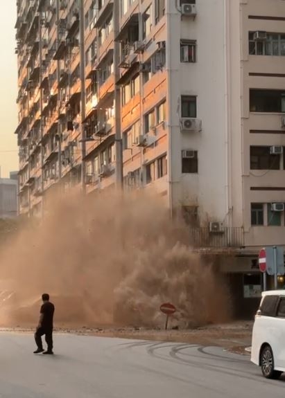 傍晚5時許,警方接獲數宗報案,指佐敦文匯街26至48號文景樓對開路面有鹹水管爆裂,水柱達2至3層樓高,有石屎碎片噴上半空,砸中附近車輛,有店舖水浸。警方到場跟進,水務署派員到場關水掣。