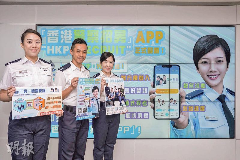 【明報專訊】警隊繼續出招「搶人才」,今起推出「香港警察招募App」供投考者遞交警察職位申請、接收面試安排和遴選結果等資訊。警方下周一(9日)起另推「二合一遴選快線」,在小組面試「準備充分、表現出色」的投考者,可選擇即日做最後面試,再安排入職體能測試及心理評估,料遴選程序可由過往45天減至3星期。人事部招募組警司陳杰峰稱,措施落實後,警方成為唯一可用手機遞交職位申請表的政府部門,相信能方便投考者。他又提到,目前仍有約6000個職位空缺。