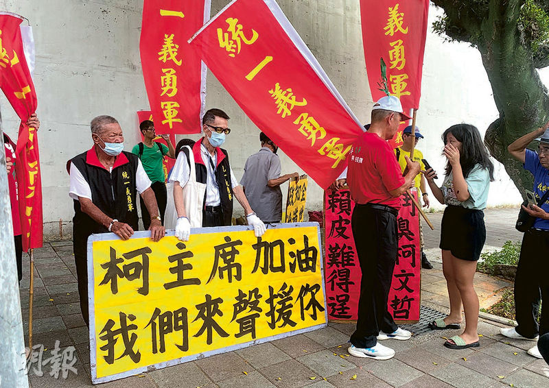 柯文哲支持者「小草」前晚到台北看守所進行「寧靜革命」聲援柯文哲,土城警分局「舉牌警告」後才散去。昨上午再有約10名民眾舉「統一義勇軍」的紅色旗幟及「柯主席加油,我們來聲援你」的海報聚集在看守所對面的行人道,發表演說聲援柯文哲,遭警方警告要求解散離開後散去。