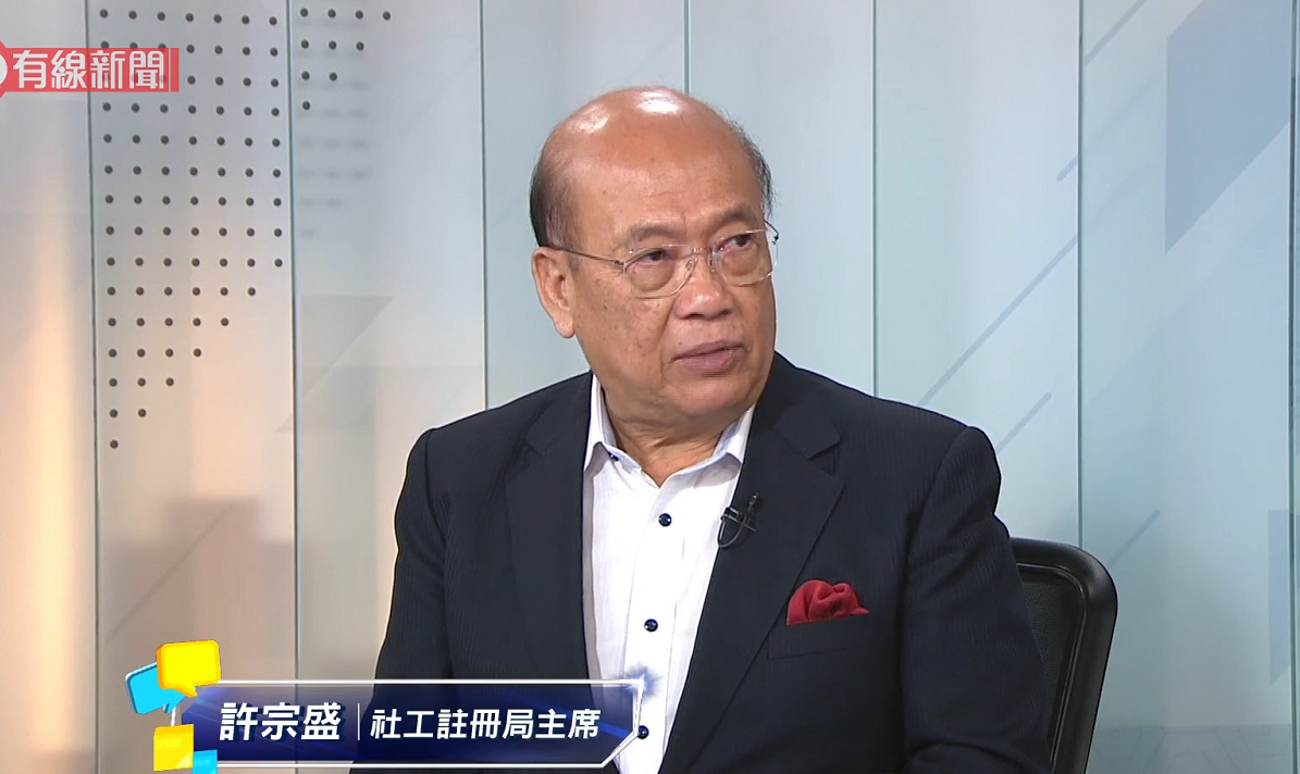 社工註冊局今年7月改組,勞福局曾要求註冊局建立機制,處理涉嫌危害國安及嚴重罪行的社工,並盡快完成改組。社工註冊局新任主席許宗盛今日(7日)接受電視訪問時強調,將在社工工作守則加入國安元素,並會在改組工作中考量社工「形象」。