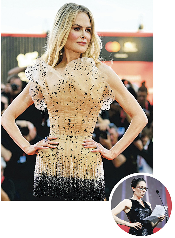 【明報專訊】第81屆威尼斯影展香港時間本月8日凌晨閉幕及舉行頒獎禮;西班牙74歲名導艾慕杜華(Pedro Almodovar)首次執導英語電影《The Room Next Door》,捧走最高榮譽金獅獎;《變鈦》法國男星雲遜林頓(Vincent Lindon)憑《The Quiet Son》稱帝;妮歌潔曼(Nicole Kidman)以新片《Babygirl》「偷食」小鮮肉的CEO角色封后,本已抵達水都準備上台的她,突然接到母親離世噩耗,感到震驚及傷心,要由女導演夏蓮娜利真(Halina Reijn)代領獎並讀出聲明。