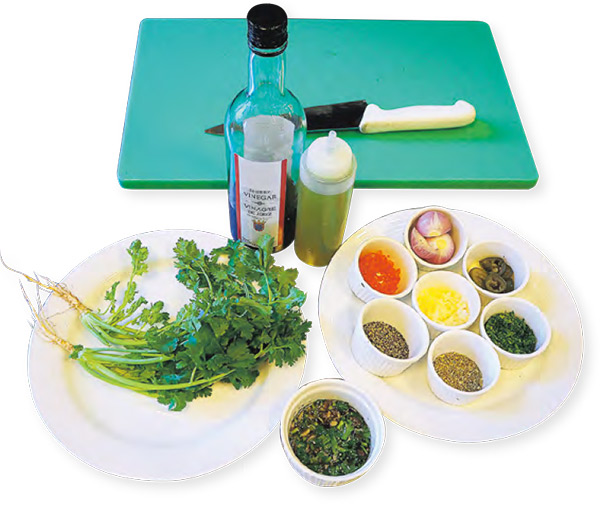 他更推薦自行製作燒烤醬料,並請來林宇光示範,製作冶味的阿根廷燒烤汁(chimichurri)。
