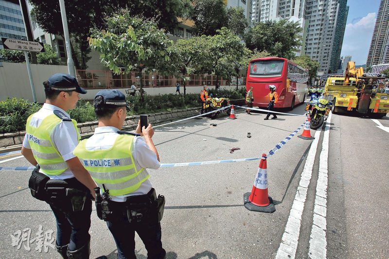 【明報專訊】旺角昨發生致命交通意外。一名被妻子形容是「模範爸爸」的地盤工人,在海泓道按照「綠公仔」橫過馬路時遭違例轉彎的旅遊巴撞倒及輾過,送院不治。旅遊巴司機涉嫌危險駕駛導致他人死亡被捕。