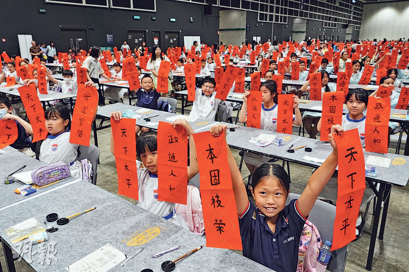 港聞 「天下太平 政通人和」 1800學生揮毫賀國慶 發佈於 1 年 前 2024 年 9 月 15 日 By 明報 【明報專訊】教育局昨日舉辦「千人揮毫賀國慶」活動,逾1800名來自81所小學及61所中學的學生,以及300名校長、教師及嘉賓參與,即席揮毫寫上「天下太平」、「政通人和」、「本固枝榮」及「安定繁榮」等祝頌語。大會將挑選75件優秀的學生作品,予以嘉獎及展覽。 署理教育局長施俊輝致辭稱,書法能修養品德,同學在過程中可感受筆觸變化,思考章法佈局,領略書寫的意趣,並且沉澱心靈,陶冶性情,可慢慢提高審美能力和文化內涵。 相關文章: Up Next 3年免費網上測試 助辨腦退化患者 年屆60每大一歲 認知及格率低一成 不要錯過 記協:13媒體有記者被滋擾恐嚇 有家人僱主業主接警告 主席促查保安局籲報警 繼續閱讀 贊助商 猜你喜歡