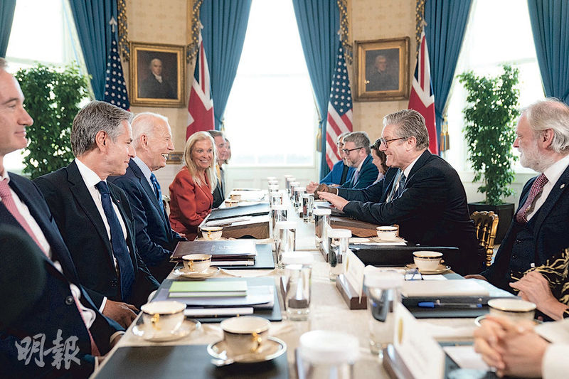 【明報專訊】美國總統拜登前日(13日)與到訪華盛頓的英國首相施紀賢會談後(圖,路透社),押後放行烏克蘭使用西方長程導彈深入打擊俄羅斯本土。俄總統普京上周四揚言,若美國及其盟友讓烏克蘭解禁使用長程導彈襲俄境,等同北約與俄開戰。