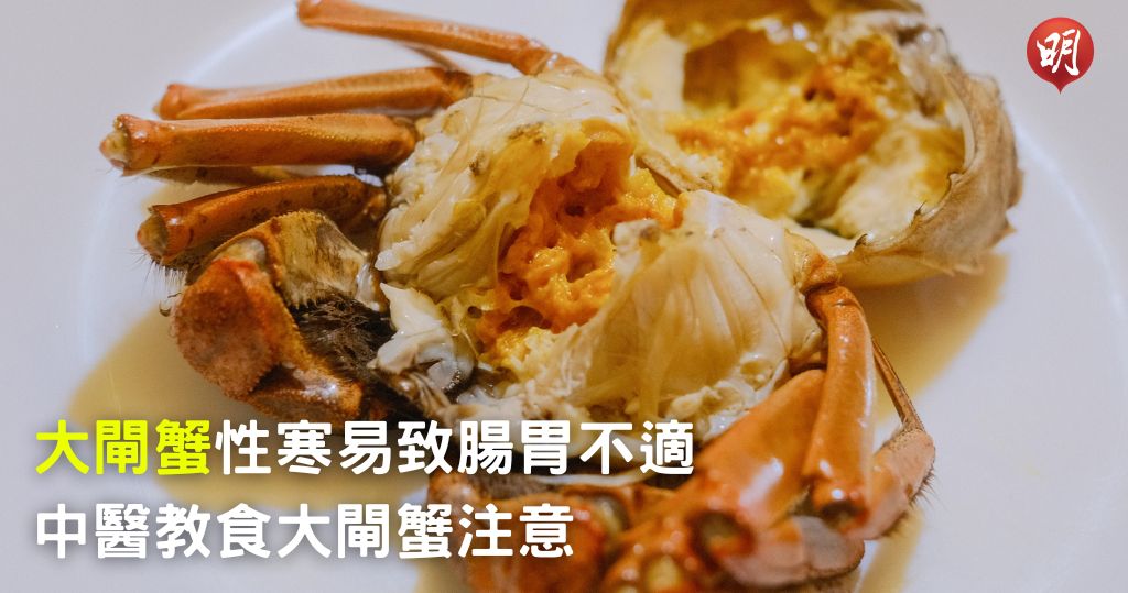 大閘蟹季節將至,不少人擔心食用大閘蟹會較寒涼?如何中和寒性?註冊中醫鍾嘉瑜博士表示,蟹性寒是由於大閘蟹是人工淡水養殖,長居湖底,比海蟹更寒,如果一次進食太多,可能出現屙嘔肚痛和頭暈不適,建議每次只吃1至2隻。鍾嘉瑜講解中和寒性方法和食用大閘蟹注意,並提醒患濕疹、痛風、脾胃虛弱、經期及月經失調女性和孕婦均不宜食大閘蟹。
