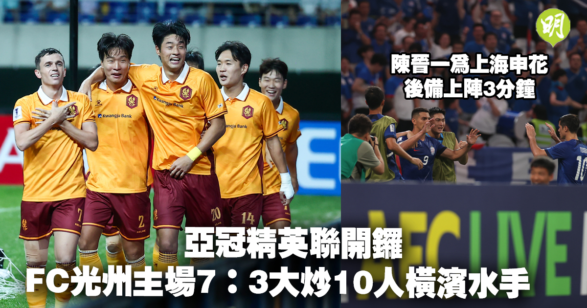 亞冠精英聯︱FC光州主場7:3大炒橫濱水手 陳晉一為上海申花後備上陣3分鐘 (22:02)