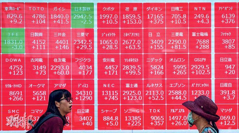 其他亞洲主要股市方面,台灣加權指數收市跌0.78%至21,678點(見表);新加坡海峽時報指數亦微跌0.11%至3589點。日圓匯價向上,帶動日本股市先升後回軟,日經平均指數早段最多升1.3%,收市報36,380點,升0.49%。韓國昨日休市。