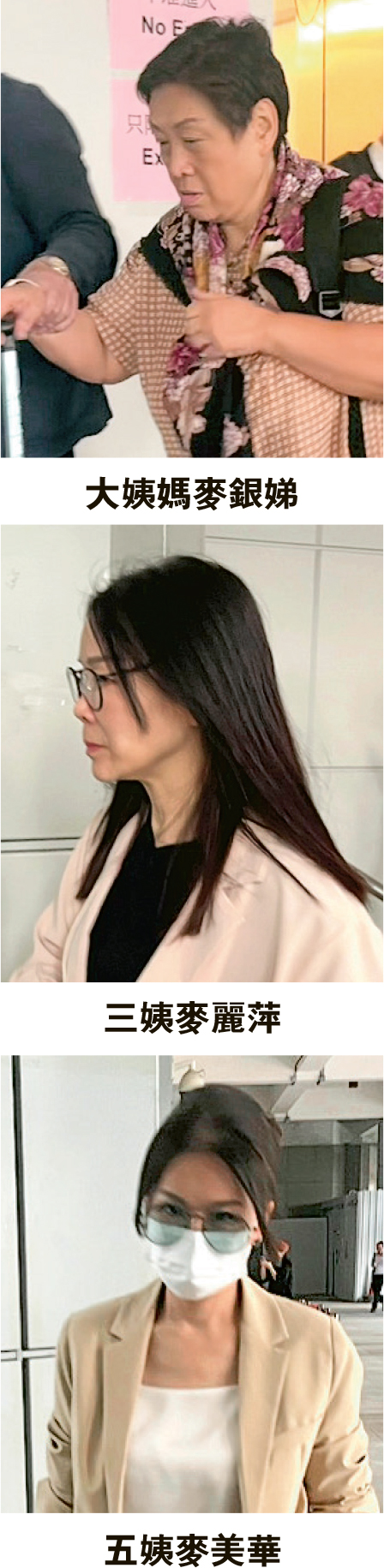 麥銀娣出庭作供,稱勞一直恨生子,曾向她說「如果你係仔就好」,但否認勞最喜歡的外孫是官仲銘。被告方稱勞為人刻薄,但對家人有慷慨一面,例如麥麗萍出嫁時,勞曾送龍鳳鐲及借錢予女兒周轉,麥銀娣同意。麥銀娣否認約於2012年3至4月與勞的關係開始疏離,又稱勞及後變得開心非因與麥銀麗同住,而是因眼部手術成功恢復視力。審訊今續,麥銀娣繼續作供。