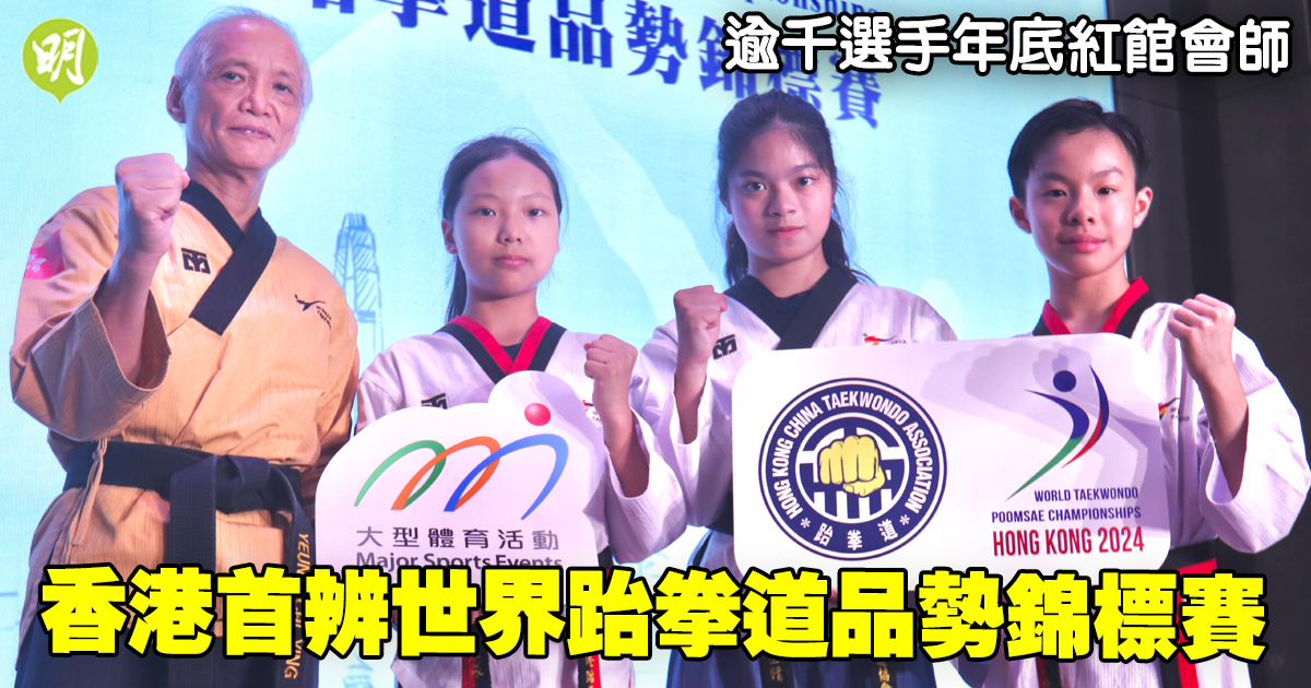 中國香港跆拳道協會今宣布,兩年一度的世界跆拳道品勢錦標賽將於11月30日至12月4日首次在香港舉辦,賽事將於紅館上演,並吸引來自80多個國家或地區近1200名運動員參賽,包括有約50名港將出戰27個項目,其中4名港將包括參與混雙公認品勢的吳逸晞及黃逸彤、女子自由品勢的嚴芷晴及男子公認品勢的楊志英,也在記招期間進行跆拳道示範。賽事門票將於下周四上午10時起於城市售票網開始發售,票價介乎50元至100元。