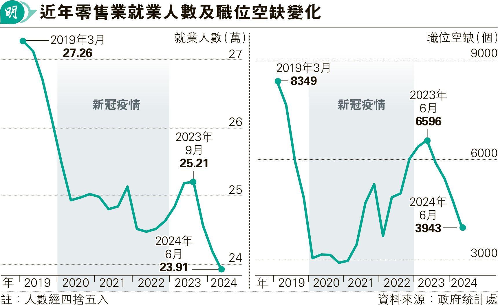 就業人數跌穿「疫情底」 零售業萎縮 職位空缺按年減四成