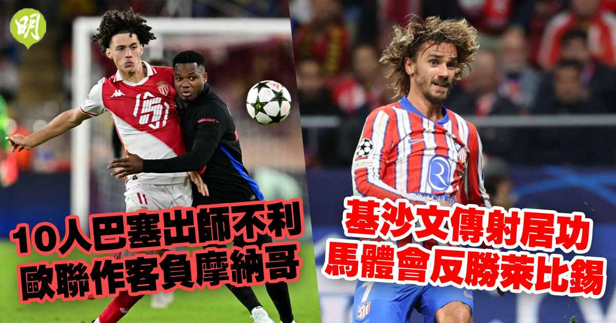 歐聯︱巴塞作客10人負摩納哥吞新季首敗 基沙文傳射居功馬體會絕殺萊比錫 (17:36)