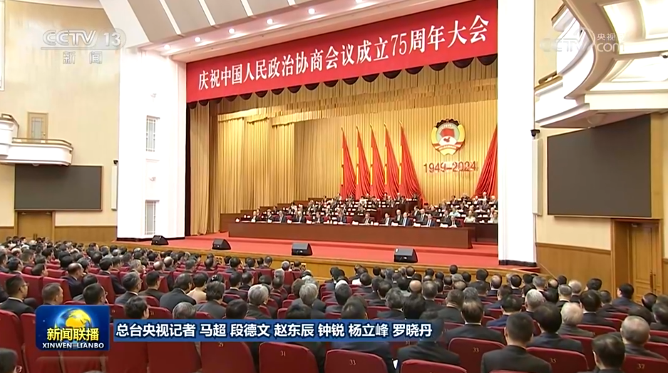 中共中央、全國政協9月20日上午在全國政協禮堂隆重舉行慶祝中國人民政治協商會議成立75周年大會,國家主席習近平出席大會並發表講話,中共中央政治局常委李強、趙樂際、蔡奇、丁薛祥、李希,國家副主席韓正出席大會,全國政協主席王滬寧主持大會。