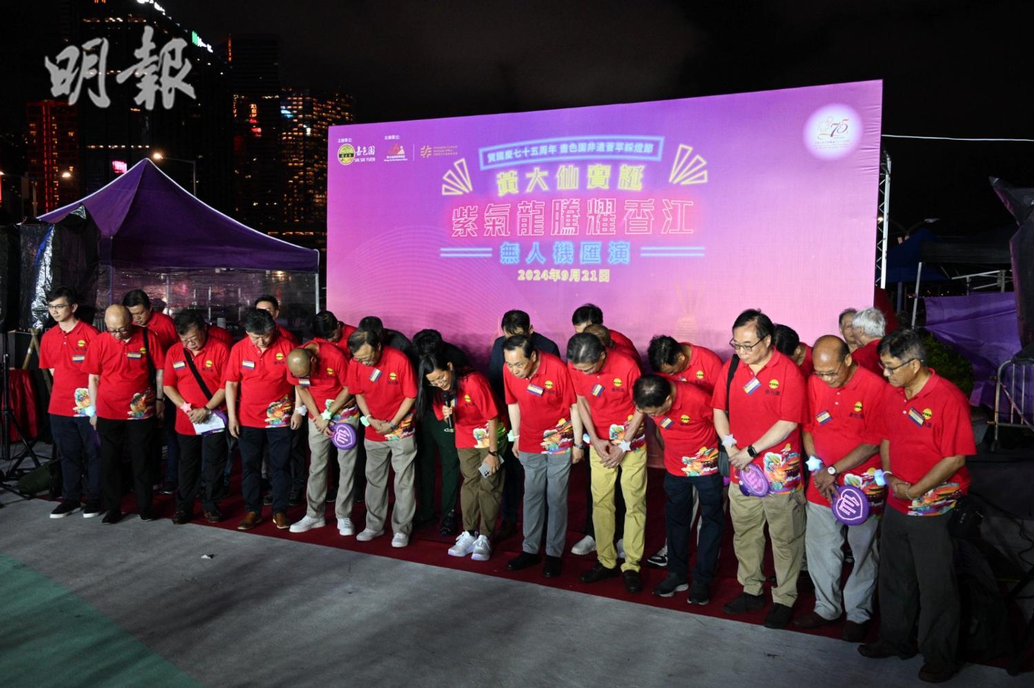 活動由嗇色園聯同黃大仙民政事務處及非物質文化遺產辦事處,為慶祝國慶75周年舉辦。主辦單位表示,今日天氣「變幻莫測」,大雨影響無人機訊號及GPS系統,因而需要取消活動,並交由活動製作公司補充,該公司代表則在台上表示,如在目前狀況下,讓無人機起飛或會釀成意外,或有大家「不會想見到的事情發生」,故無法起飛,並向在場觀眾致歉。