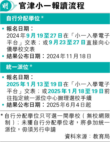 【明報專訊】明年9月升讀官津學校小一級的「自行分配學位」選校期,上周四(19日)在網上展開,而今日起家長亦可親往心儀學校交表。適齡學童減少下,有葵涌區校長鼓勵家長安排子女原區就學,不宜「蜂擁博入」跨區名校。有中西區小學校長預料當區入學競爭與過往相若。