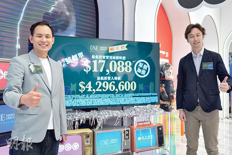 英皇集團副主席楊政龍表示,項目自上周四至今,設於灣仔英皇集團中心的示範單位,累錄逾4000參觀人次,據悉「英皇一姐」容祖兒昨日在集團主席楊受成陪同下,參觀樓盤示範單位。至於ONE JARDINE’S LOOKOUT 加推的2號價單,涉35伙1房至3房戶,折實均呎18,689元,實用面積231方呎一房戶折實429萬元起;連同首張價單50伙,合共85伙已開價(佔項目單位總數123伙的69%),整體折實均呎18,229元,料本月內開售。