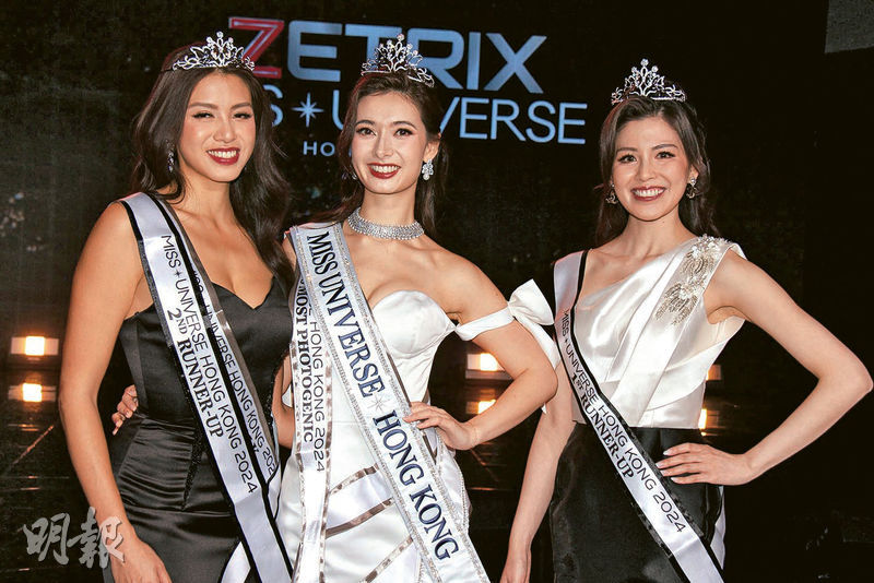 【明報專訊】前晚香港區《環球小姐》(Miss Universe)2024選美大賽選出三甲,分別是姚祖恩以大熱姿態奪冠軍,並兼得最上鏡佳麗獎及最受歡迎佳麗獎,成為三料得主。亞軍是甄蕎,2017年港姐冠軍雷莊兒屈居季軍,同時奪得最具台型佳麗獎。