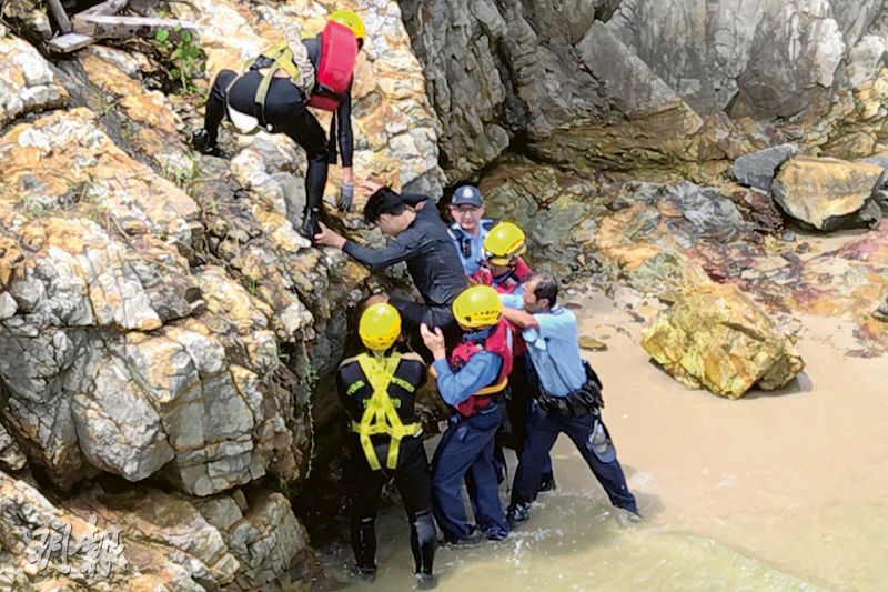 消防及警員接獲救生員報案到場,政府飛行服務隊亦曾出動直升機搜救。事主最後由消防蛙人協助下,攀過約3至4米高的岩石返回泳灘,其間他一度失足跣腳,險從高處墮下。