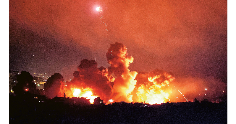 【明報專訊】以色列針對黎巴嫩真主黨的攻勢持續加劇,黎巴嫩消息人士周五(4日)告訴法新社,以色列軍周四晚至周五凌晨轟炸黎巴嫩首都貝魯特南部真主黨據點最少11次。卡塔爾半島電視台昨報道,以色列在24小時內對黎巴嫩進行了約20次空襲,形容是以色列迄今針對貝魯特的最大規模轟炸。美國和以色列的新聞網站報道,以軍的目標是被視為真主黨領袖接班人的真主黨執行委員會主席薩菲丁,暫時生死未明。以軍同日空襲西岸一所難民營,被指最少殺死18人,是20多年來當地傷亡最嚴重的一次襲擊。