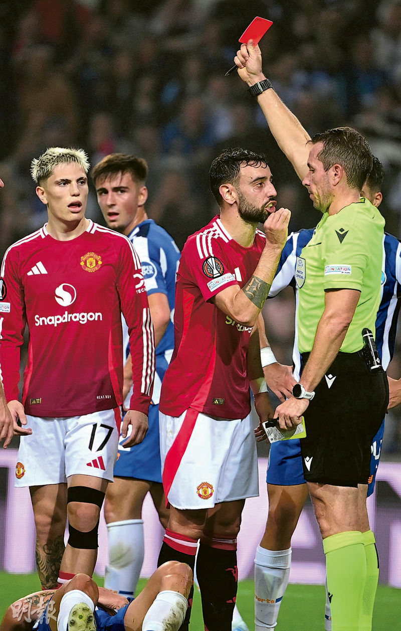 曼聯昨造訪葡萄牙有曾效力波圖的達洛治及卡斯米路正選倒戈,藉對方門將迪奧高哥斯達兩度封近柱犯錯,由拉舒福特傳射居功,以及海倫攻入今季開齋球,上半場有個好開始於20分鐘已領先2:0。然而在27至34分鐘的7分鐘內,被波圖一對鋒將比比伊度亞度及奧莫洛迪安先後頭槌扳平完半場。20歲西班牙籍中鋒奧莫洛迪安於下半場50分鐘門前勁射梅開二度,為主隊反超前。「紅魔」於81分鐘更有日前才打甩英超紅牌的般奴費南迪斯,攻門舉腳過高踢中對手而兩黃一紅,亦是這名30歲葡萄牙隊中場一周內連續兩仗被逐,踢少一人下卻於91分鐘由後備入替的中堅哈利馬古尼頭槌破網,終打和3:3各得1分。