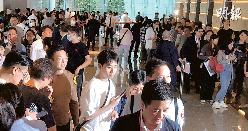 至於一般買家時段,有逾280組買家報到,排隊人龍曾由環球貿易廣場3樓,伸延至該廈的戶外停車場,現場人頭湧湧,場面熱鬧。據悉,發展商最快今日加推單位應市,擬於本周內進行次輪銷售。