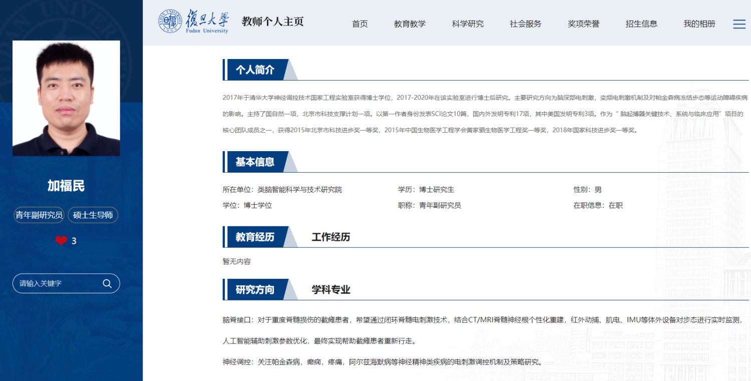 復旦大學加福民團隊採用紅外線動作捕捉、肌肉電流傳遞、慣性傳感器等技術,構建健康步態以及多種異常步態數據集,建立算法模型,實現跨人群、跨模態、跨類型的步態軌跡追蹤,為腦脊接口技術奠定基礎。