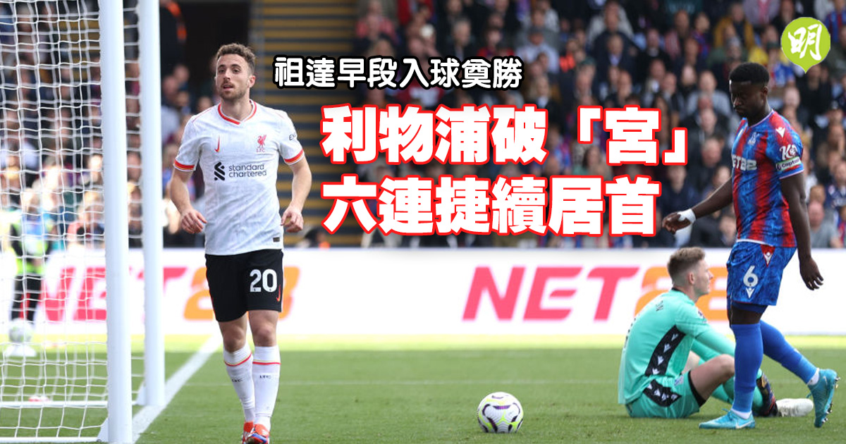 利物浦今晚(5日)於英超第7輪頭場憑前鋒迪亞高祖達早段一箭定江山,作客以1:0小勝水晶宮,各項賽事六連勝續穩居榜首。