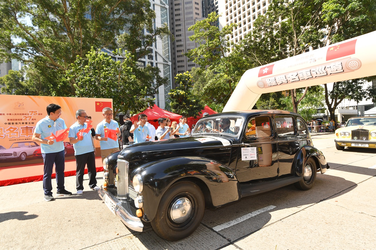 由中國香港汽車會主辦、仁濟醫院協辦的「經典名車巡遊」今日(6日)舉行,75架經典名車由中環遮打道出發,經中環海濱及尖沙嘴星光大道等地,終點為香港迪士尼樂園。主辦機構表示,75架名車象徵中華人民共和國成立75周年,寓意與國家共同邁向更美好的未來。
