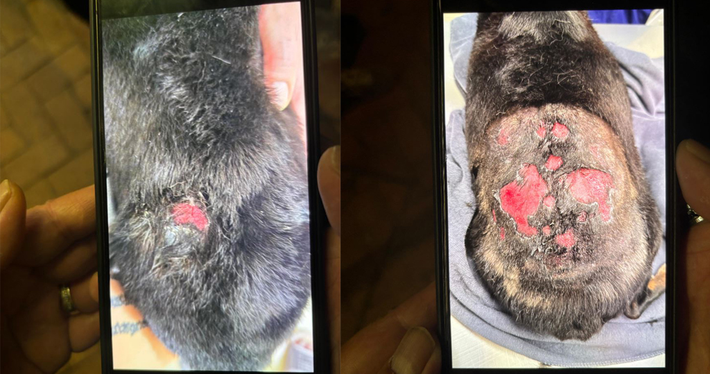 狗主賴先生表示,愛犬「阿皮」,雄性,已飼養14年。阿皮早前肚瀉,至前日不肯進食「謝晒」,為牠檢查身體時發現背部滲血水,昨午帶牠到北角檢查。獸醫為阿皮剷毛後發現背部有多處傷痕,相信4至7日前曾沾腐蝕液或熱水而造成,又稱家庭成員不會如此對待愛犬,故懷疑家中菲傭,遂報警求助。賴先生續指,菲傭今年1月開始獲聘,工作表現一般,早前要求12月請假回國,但因其工作未滿一年而被拒,未知是否與此事件有關。