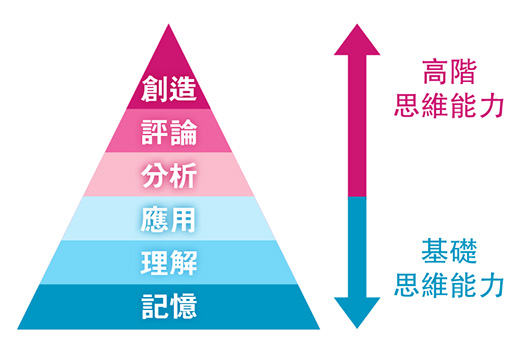 美國學者Benjamin Bloom早於1950年代就提出一個教育框架,名為布魯姆分類法(Bloom’s Taxonomy)。此分類法把學習分成6個不同層次,由下而上依次是記憶、理解、應用、分析、評論和創造(圖)。由此可見孩子需先有穩固的記憶及理解能力,其他能力才能相應地發展。