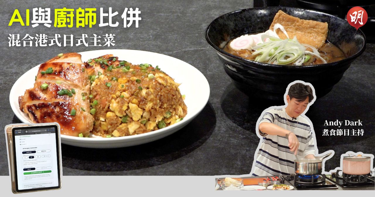 為了解AI食譜與廚師創作的分別,明報電子平台組用「混合港式日式主菜」作為關鍵字,分別邀請煮食節目主持Andy Dark創作,以及使用AI工具「cookAIfood」生成食譜。