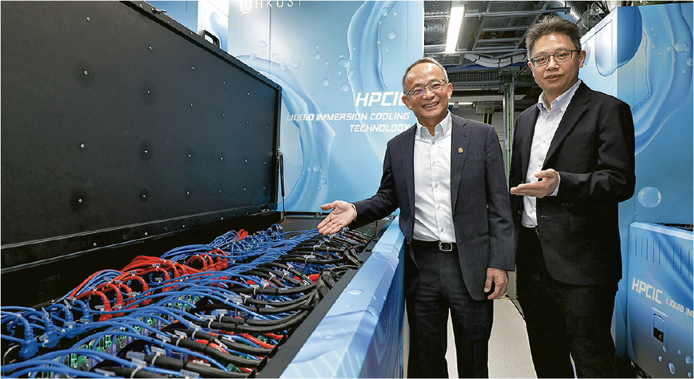 科大昨舉辦導賞團,展示首階段安裝8個浸沒式冷卻水箱,可容納約280台中央處理器(CPU)和圖形處理器(GPU),校方指這個「浸沒式液冷卻系統」屬全港最大規模;預料後年落成的「高性能數據中心」亦將採用液冷技術。
