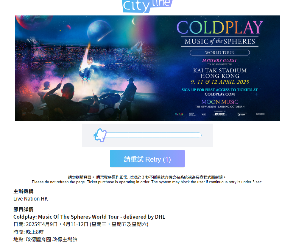 Coldplay香港演唱會門票公售 大部分門票首十分鐘已售罄 (11:07)