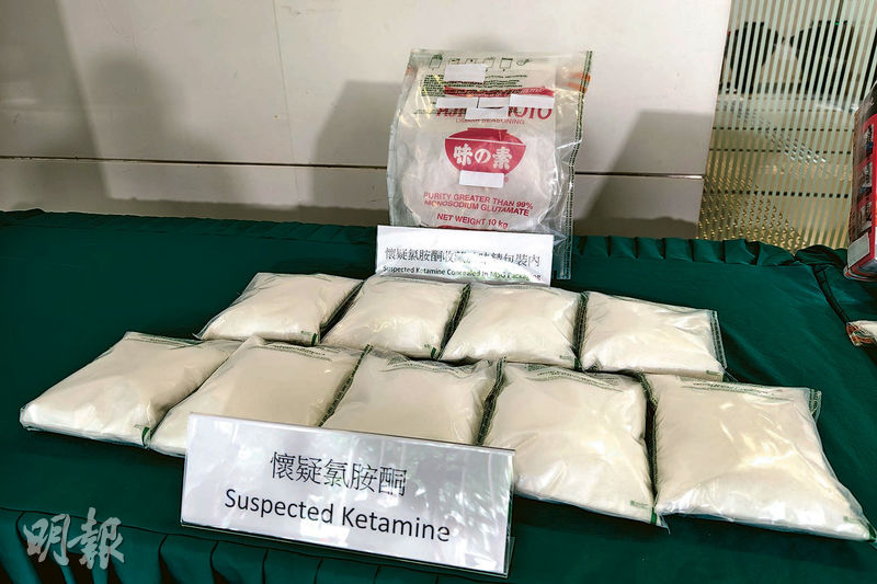 【明報專訊】一個包裹由荷蘭空運抵港,報稱為廉價的味精,引起關員懷疑,周一(7日)打開檢查,發現內藏9公斤氯胺酮(K仔),市值約440萬元。關員前日展開監控遞送,在柴灣拘捕收貨的16歲中五男生,同日再拘捕20歲男子,他涉嫌教唆男生收取涉案包裹。海關呼籲青少年切勿貪圖利益販毒,不要低估相關刑責。