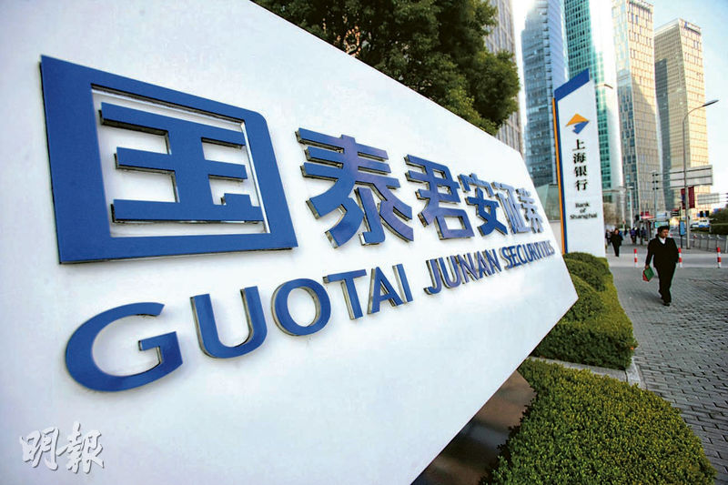 【明報專訊】國泰君安(2611)與海通證券(6837)的合併重組細節周三晚出爐。國泰君安將向海通股東發行A股及H股換股,每股海通可換0.62股國泰君安,AH股換股比例相同。兩行A股昨日復牌齊升10%漲停,H股股價則曾齊升逾倍,收市時國泰君安及海通證券H股分別升55.07%及95.48%。