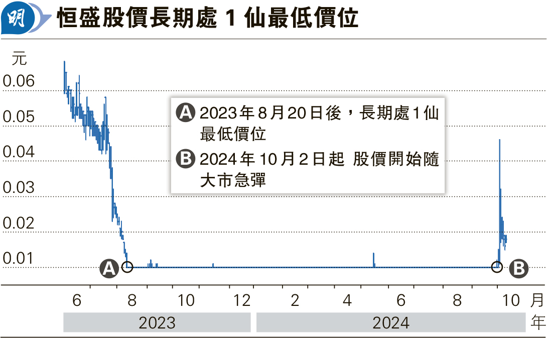 值得留意的是,已持續多年的內房危機令多家內房淪落為仙股,而恒盛更是長期停留在1仙最低位,成交欠奉,故即使券商想斬倉亦難以行動。不過隨着上月底內地救市刺激,內房開始重新活躍,便給予了投資者及券商「逃生門」。