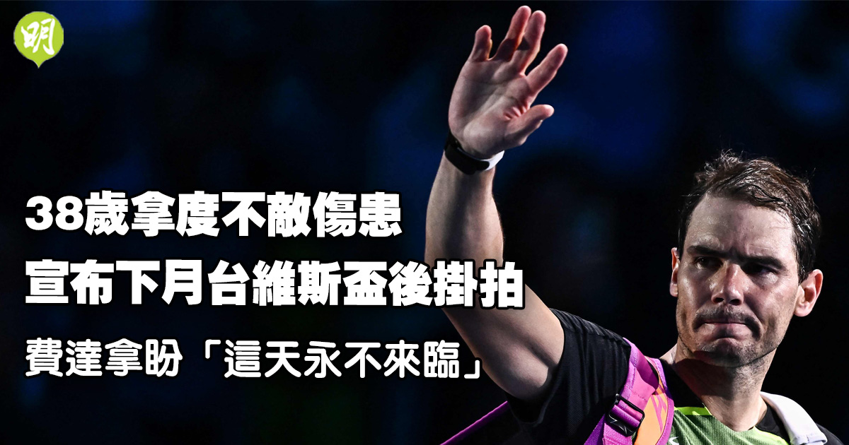 網球|38歲拿度不敵傷患 宣布下月台維斯盃後掛拍 費達拿盼「這天永不來臨」 (20:23)