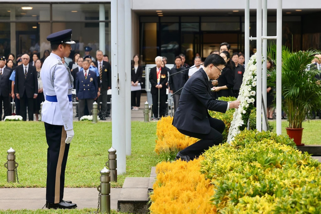 即時港聞 李家超赴大會堂悼二戰衛港英烈 楊何蓓茵向殉職公務員及馬尼拉人質事件死難者獻花 (11:34) 發佈於 1 年 前 2024 年 10 月 11 日 By 明報 特首李家超於重陽節到香港大會堂出席一年一度的官方紀念儀式,悼念在二戰中為保衛香港捐軀的英烈,並稱應世代銘記在戰爭中英勇犧牲的英雄和同胞,從歷史中吸取教訓,珍惜和平。前特首曾蔭權、行會召集人葉劉淑儀及立法會主席梁君彥等都有出席。 公務員事務局長楊何蓓茵早前則到浩園悼念殉職的公務員。她指長埋浩園的公務員來自政府不同部門、職級,盡心盡力為市民服務,值得其他公務員學習。楊何蓓茵亦到景仰園向菲律賓馬尼拉人質事件死難者獻花致意。 相關文章:李家超楊何蓓茵編輯推介 Up Next 筲箕灣迷你都柏文犬疑遭菲傭虐待 器官衰竭不治 (15:39) 不要錯過 西沙路輕型貨車與兩校巴相撞 三名學生受傷送院 (17:09) 繼續閱讀 贊助商 猜你喜歡 特首機場迎習 與在韓港企交流 李家超晤新加坡總理黃循財 倡投資北都以把握大灣區市場潛力 (16:06) 李家超晤阿聯酋阿布扎比王儲 望港與海合會達自由貿易協議 (13:01) 立法會選舉|林建岳呼籲商界予投票員工「感謝假」 (18:39) 【Emily】非政府發出 黃傑龍收神聖一票短訊 政府舉行第二期關愛隊啓動禮 李家超冀將團結互助精神發揚光大 (19:29)