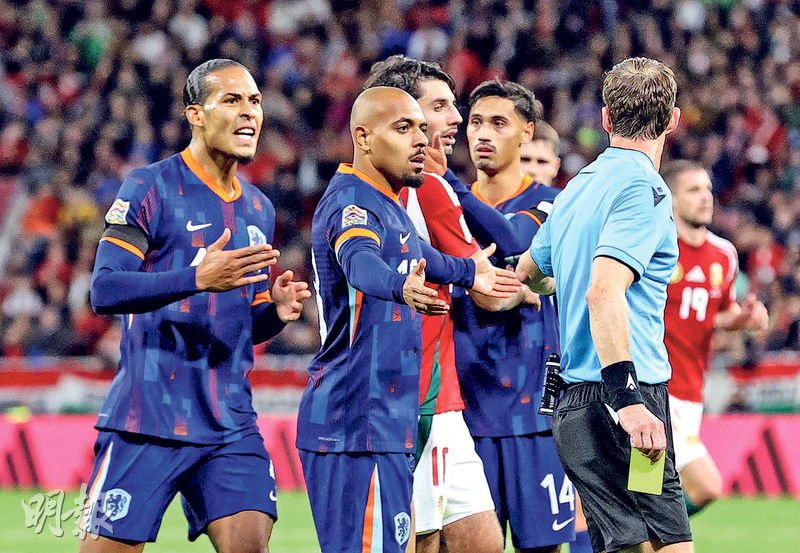【明報專訊】荷蘭隊昨晨於歐洲國家聯賽A3組作客僅以1:1逼和匈牙利隊,近10次交手首次未能取勝,賽後主帥朗奴高文批評球證此仗執法不公,認為陣中隊長華基爾雲迪積克末段領第2面黃牌變紅牌被逐屬過嚴。