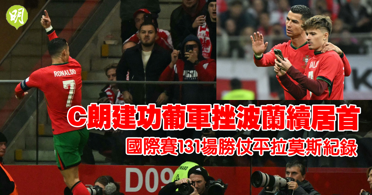 歐國聯|C朗建功葡萄牙挫波蘭續居首 國際賽131場勝仗平拉莫斯紀錄 (18:00)