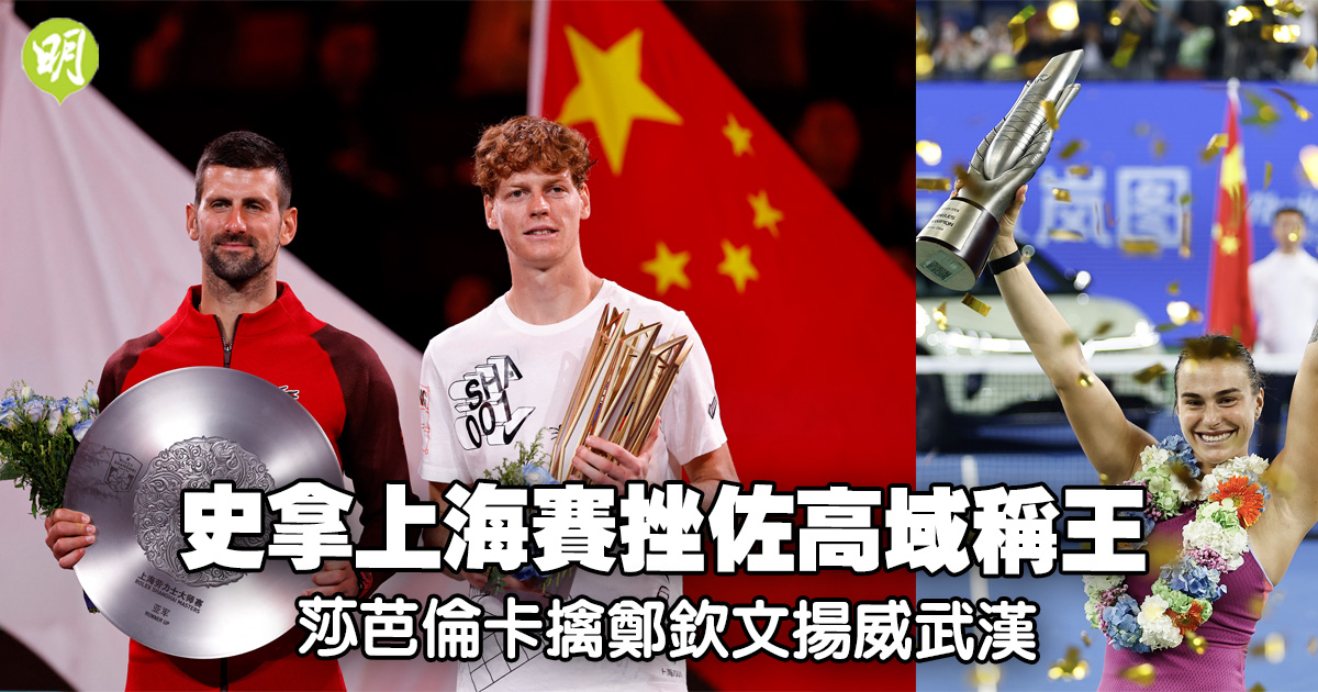 篤定是網球壇年終「一哥」的意大利籍好手史拿,今晚(13日)在上海大師賽男單決賽,以7:6(7:4)、 6:3挫24個大滿貫得主塞爾維亞籍名將佐高域稱王;白俄羅斯籍的莎芭倫卡則在武漢公開賽女單決賽,以6:3、5:7、6:3打敗國家隊的鄭欽文,令交手全勝紀錄改寫為4次。