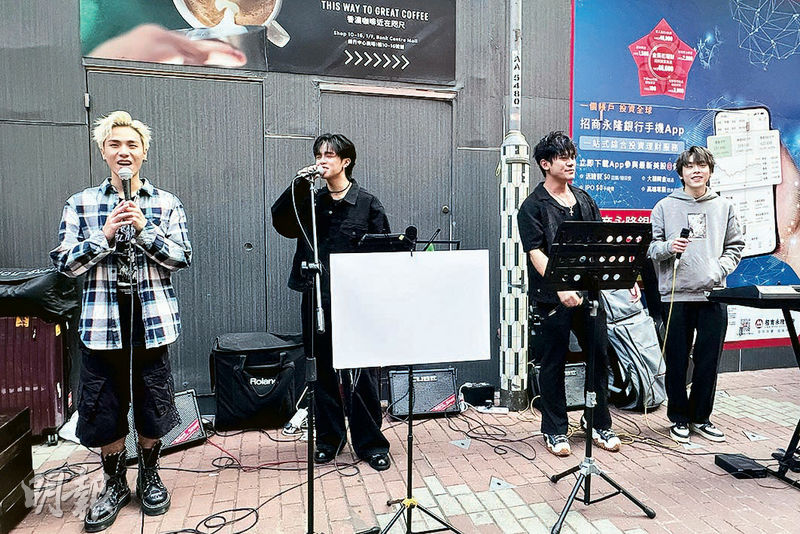 【明報專訊】樂隊ROVER演出10場音樂劇《重拾10分鐘》後,隨即為新歌《男孩子不要流淚》宣傳,4子首次現身旺角busking,獻唱5首歌曲,吸引逾百粉絲及途人圍觀。