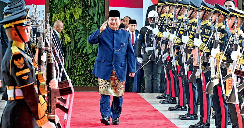 【明報專訊】印尼昨天(20日)舉行總統就職禮,軍人出身的普拉博沃正式接替執政了10年的佐科出任印尼第8任總統。普拉博沃就職演說呼籲國家團結和強調能源、糧食自給自足,也提及民主和不結盟外交。他於昨晚公布其稱為「紅白內閣」(印尼國旗顏色)的新政府部長名單,其中62歲經濟學家英卓華留任財長,外界認為這有助加強市場對印尼經濟信心。惟新政府大型開支計劃被指存在債務隱憂,擴大後的新內閣也被指有政治酬庸考慮,可能導致政府部門疊牀架屋影響施政效率。