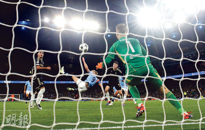 【明報專訊】今屆歐聯4隊英超在頭3輪均保持不敗,其中曼城昨在主場以5:0大勝布拉格斯巴達後,以連續26場創下歐聯最長不敗紀錄;射手艾寧夏蘭特梅開二度之餘,更技驚四座攻入一個高難度的凌空後腳金球,連領隊哥迪奧拿賽後更驚歎為「非人類」的動作。