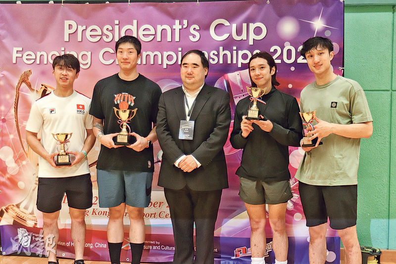 【明報專訊】一連兩日的會長盃劍擊錦標賽昨於香港公園體育館煞科,港隊星將張家朗迎來巴黎奧運衛冕男子花劍個人賽金牌後首擊,並戰至男花決賽以15:10輕取吳諾弘稱王;22歲的小將吳佳蔚則於女子花劍決賽以15:8力挫關渝澄封后。