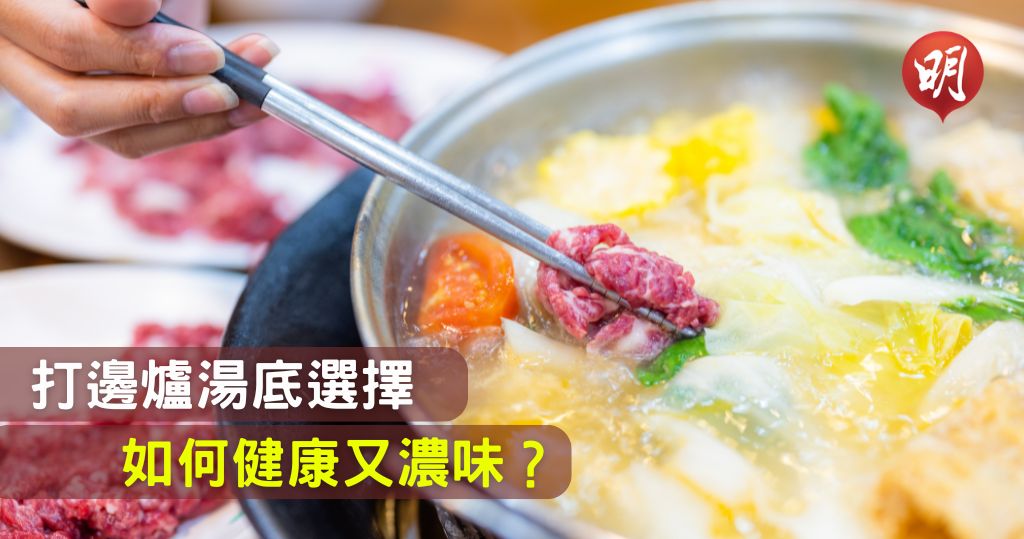 如想湯底味道較濃更入味,黃翠萍建議,可把食材先煲半小時,才開始打邊爐。食材方面,選擇天然食材如白蘿蔔、番茄、南瓜、雜菌、洋葱、芹菜等,無論是用作湯底或打邊爐都適合。她提醒,白蘿蔔、豆腐和碳水化合物含量高的食物(如薯仔、南瓜),容易吸火鍋內的脂肪、鈉和嘌呤,盡量早點吃,避免在鍋裏滾太久。