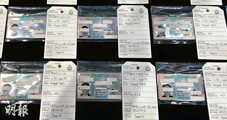 【明報專訊】入境處在國家出入境管理局統籌下,在7及8月聯同展開跨境聯合行動,搗破跨境偽證集團,兩地共拘捕201人。偽證集團以「來香港搵真銀」招攬內地人到港當黑工,提供「一條龍」服務包括製假身分證、安排住宿及保證有工開等,相信該集團運作逾半年,估計涉款超過1300萬元。入境處稱,檢獲的偽證質素差劣,欠缺防偽特徵,只要細心觀察便可輕易分辨。