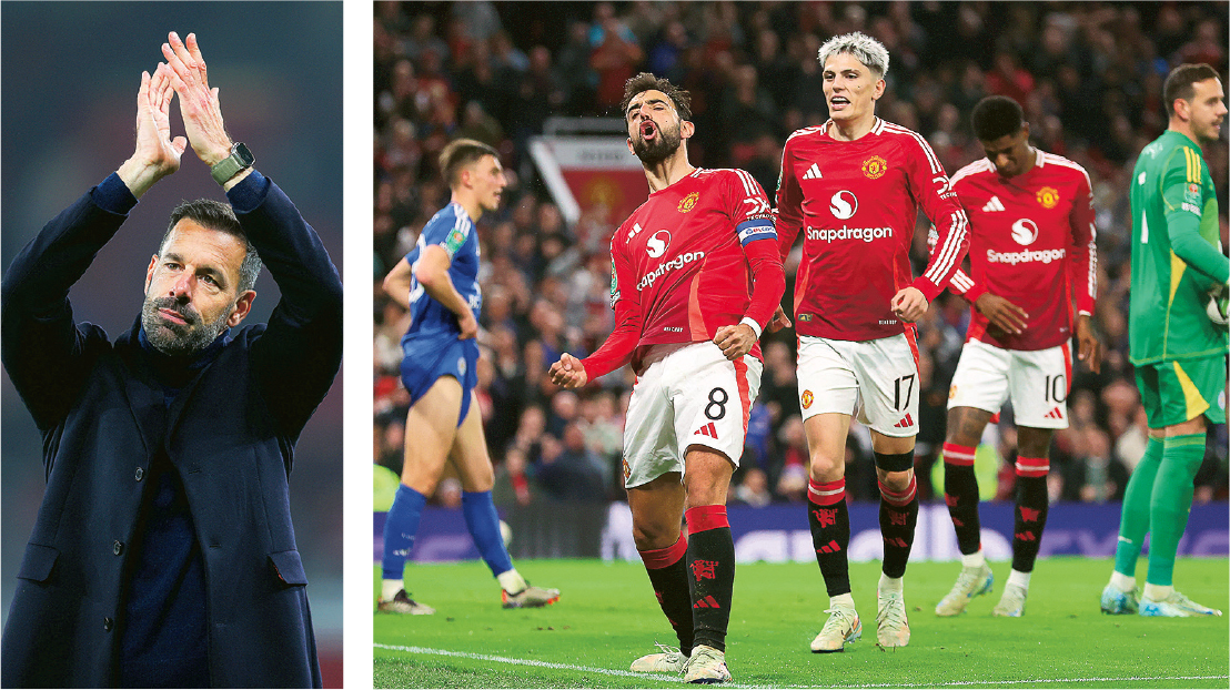 【明報專訊】曼聯昨展開後坦夏格時代首戰,由看守領隊兼球會名宿雲尼斯達萊領軍下,於英格蘭聯賽盃16強藉中場卡斯米路「左右開弓」得手,加上般奴費南迪斯亦梅開二度兼開齋,帶領球隊主場以5:2大勝李斯特城。據悉「紅魔」準新帥魯賓艾摩廉將在本月中的國際賽檔期後才履新,故此預料「雲佬」仍會在未來3仗督師。