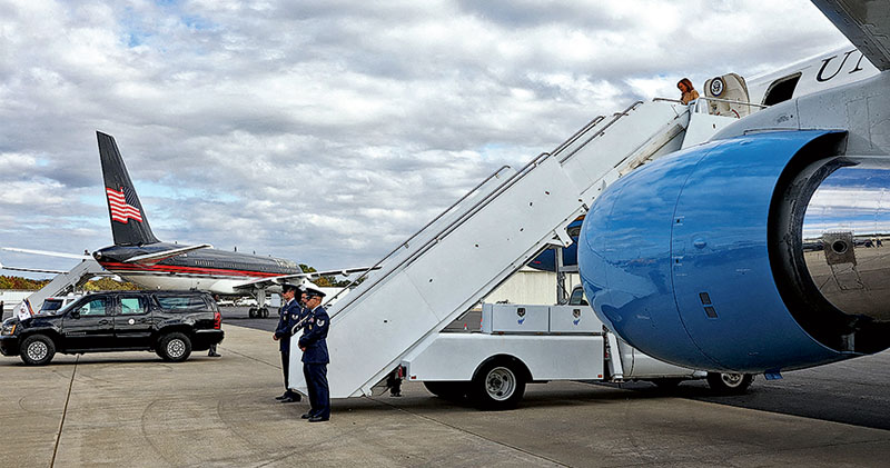 游離州衝刺 特朗普賀錦麗六天六度同州搶票 專機曾泊同一停機坪 今同處匹茲堡